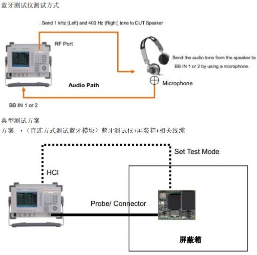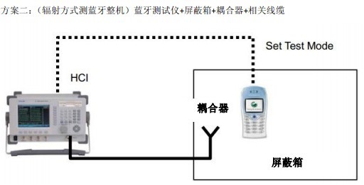 測試配置:藍牙測試儀+屏蔽箱+耦合板+射頻線